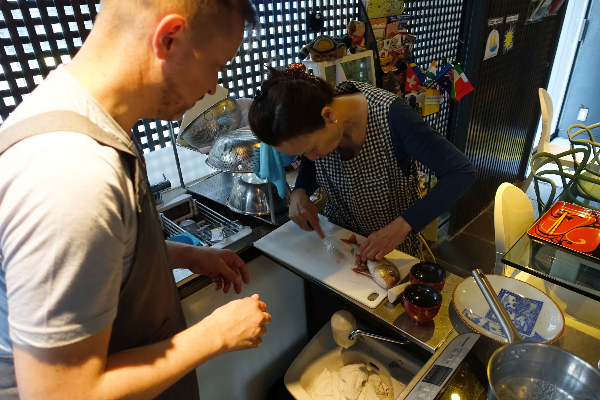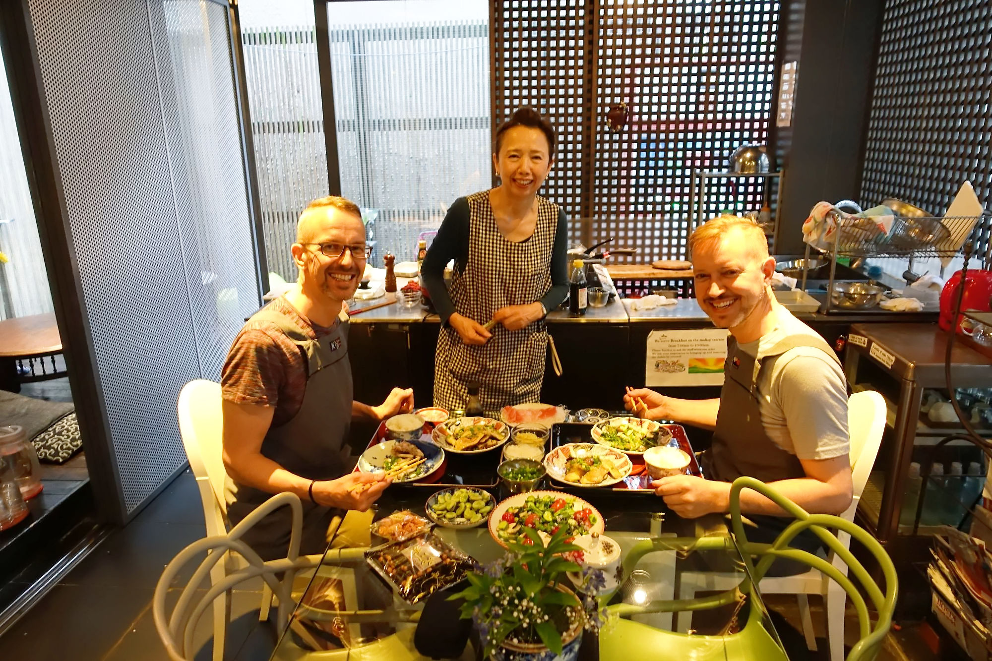 In unserem kleinen sympatischen Andon-Ryokan konnten wir einen Kochkurs unter Anleitung der Besitzerin Toshiko Ishii machen.