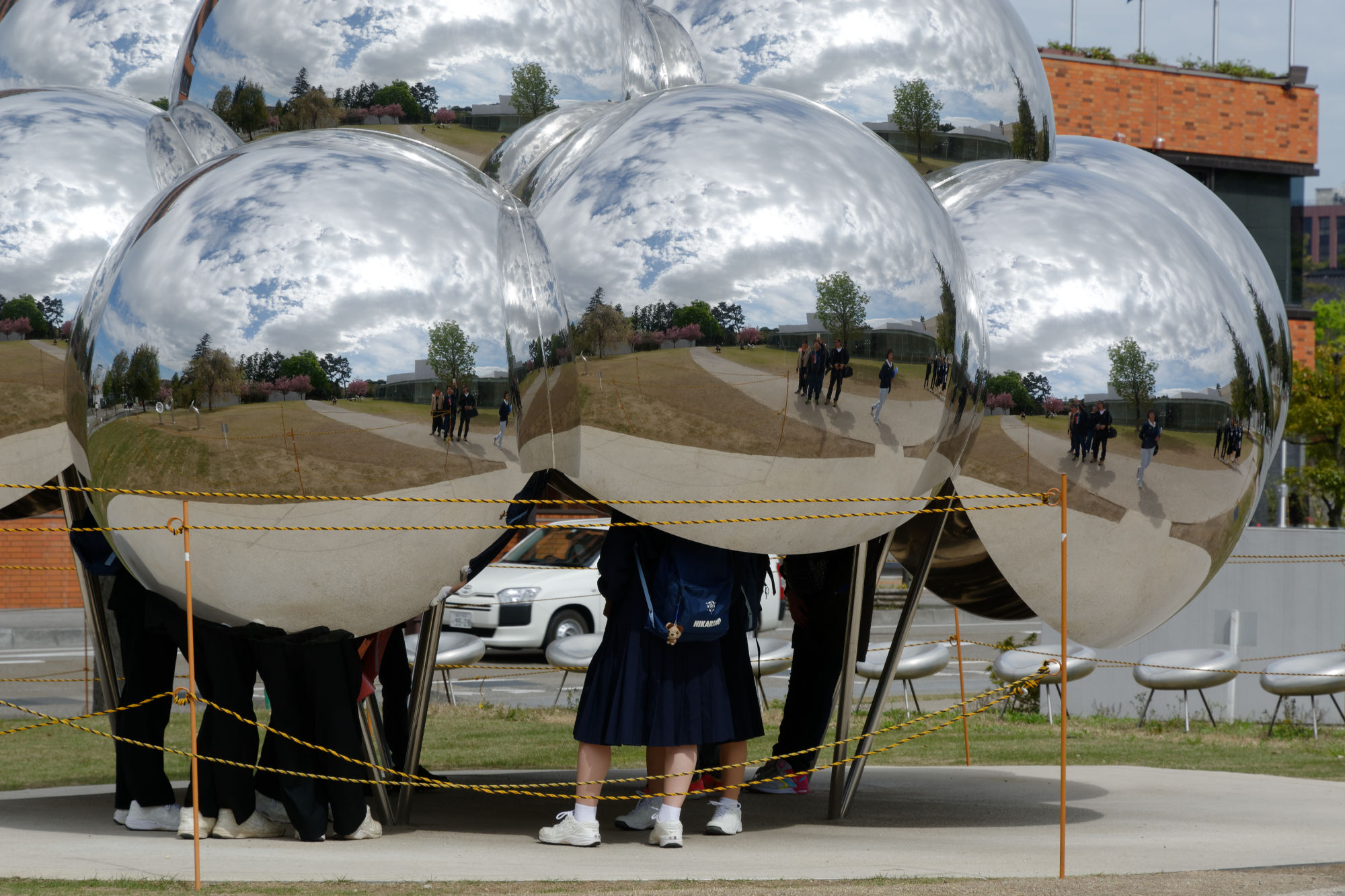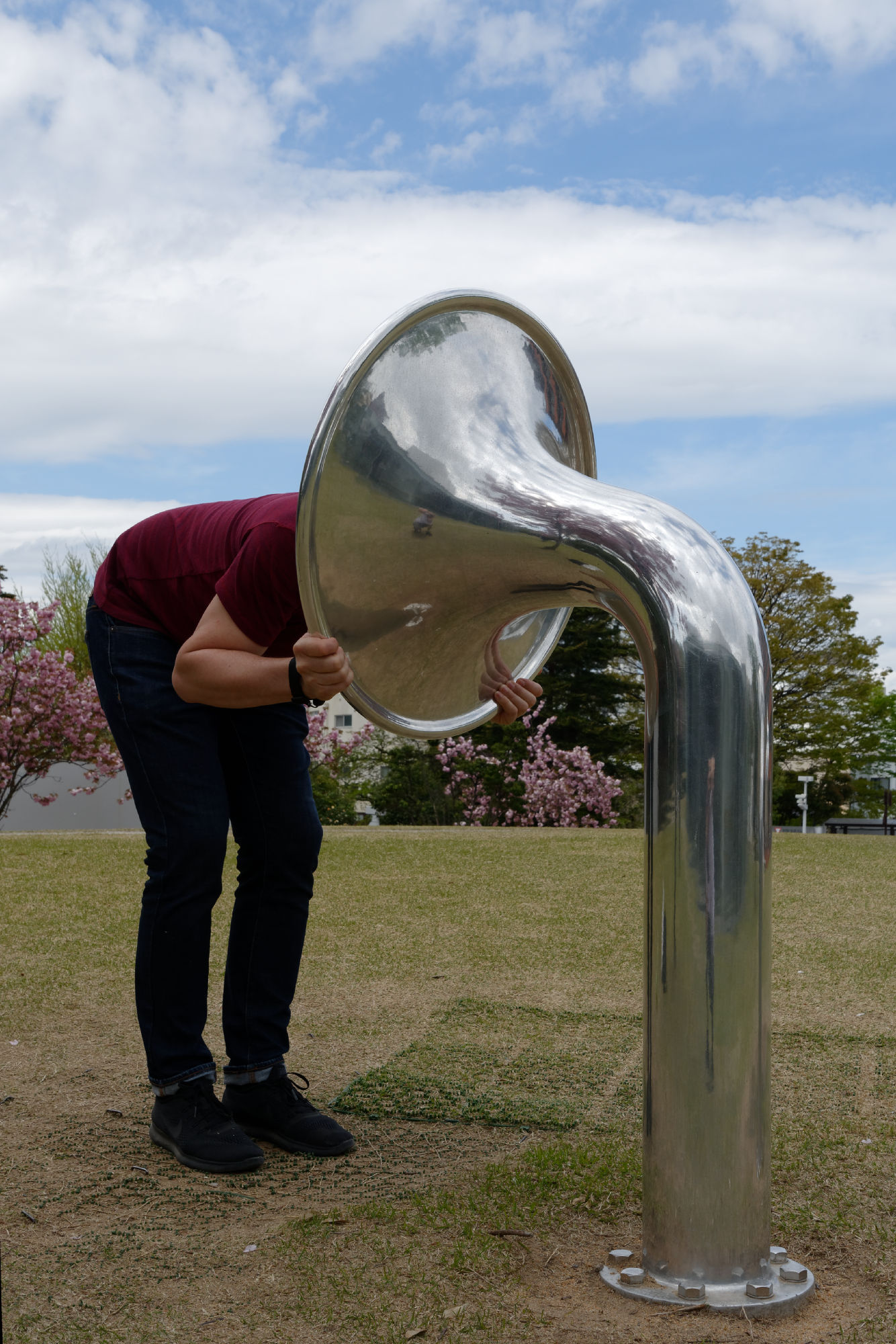 • Ja Kanazawa hat mir bis jetzt fast am besten gefallen. Eine noch beschauliche Stadt, in der man auch gut mit dem Fahrrad von einem Ort zum nächsten fahren kann…. Das Museum ist wirklich sehr cool mit einigen spielerischen Ausstellungsstücken. Durch die verchromten Trompeten konnte man mit einer Person irgendwo sonst im Museumsgarten sprechen, mit der man mit einer Röhre verbunden ist…