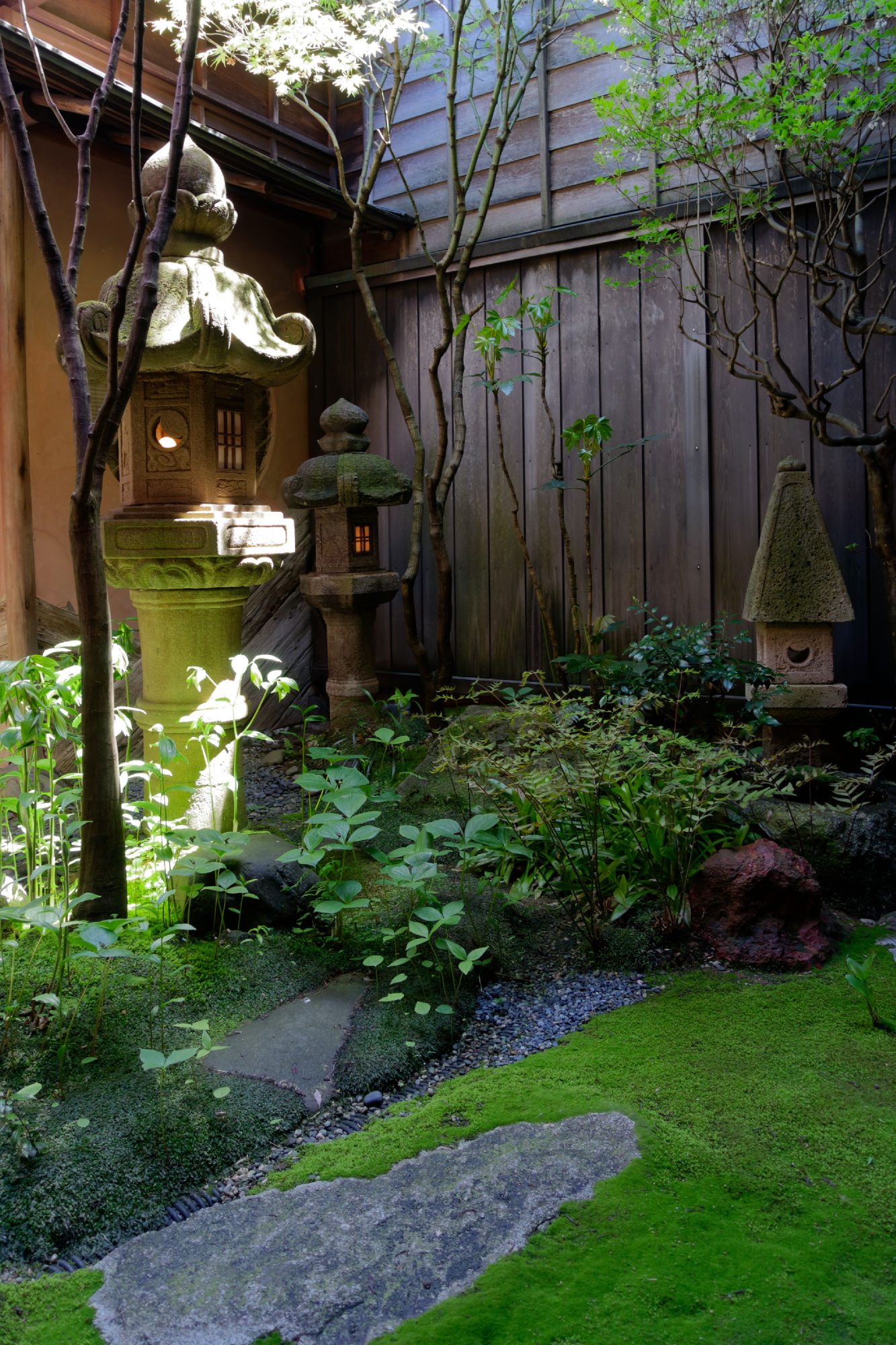 Von allen japanischen Gärten die wir gesehen haben (und das waren einige…), haben uns die kleinen, feinen Gärten in den Innenhöfen der alten Tee- und Herrschaftshäuser am meisten fasziniert. Kleine Welten, weitab vom umgebenden Alltagsgetümmel. Alle sind sehr sorgfältig komponierte Meisterwerke aus Bäumen, Sträuchern, Moosen, Steinen, sprudelndes und ruhiges Wasser und als Blickfang dazwischen Steinlaternen.