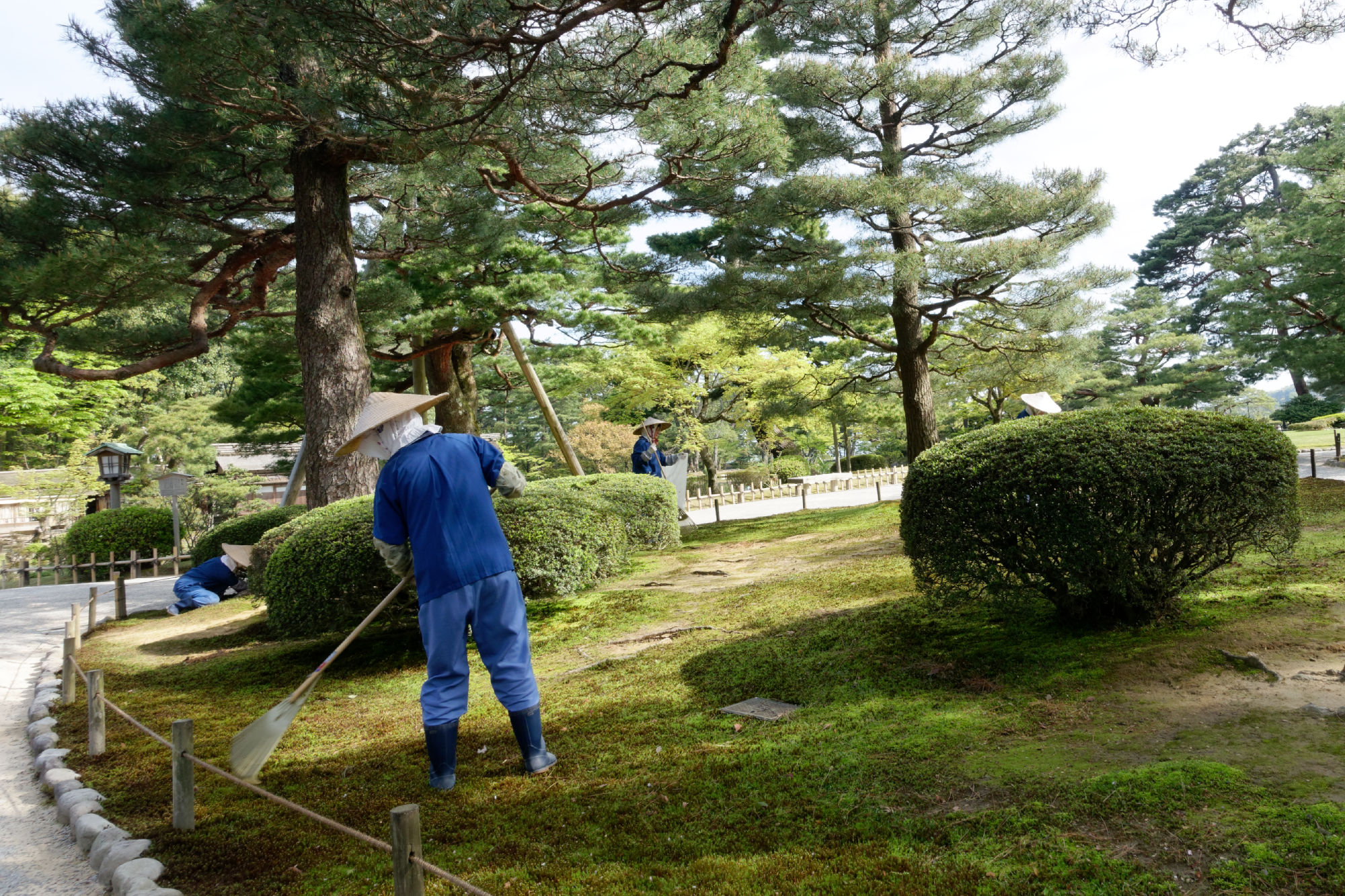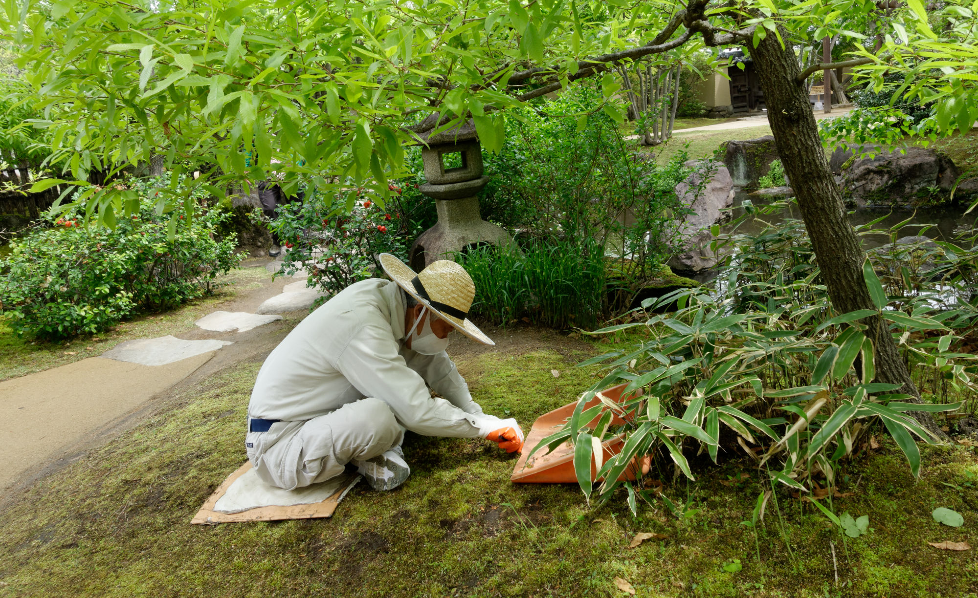 Es wird gerecht, geschnitten geputzt und mit der Pinzette werden Unkräuter aus den Moosflächen gezupft..