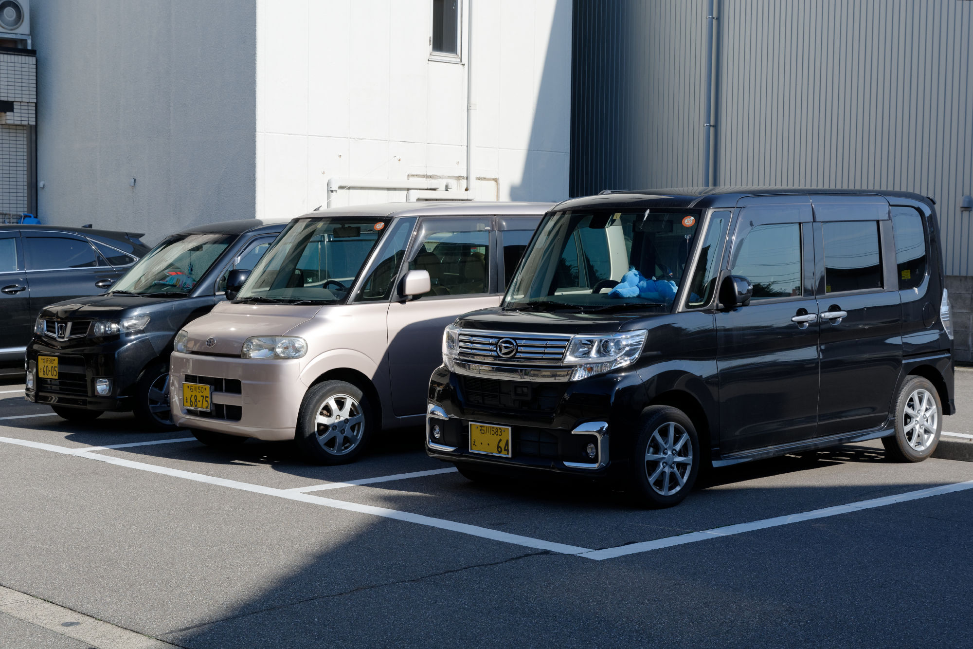Die extreme Dichte in den städtischen Gebieten führt dazu, dass jeglicher Raum extrem effizient genutzt wird, sei es mit 8m2 Hotel Zimmer, Konzentration der Grünflächen in den Gärten oder auch extrem schmalen in die Höhe strebenden Häuser. Kein Wunder dass auch die Autos diesem Trend folgen (inkl. den Parkplätzen).