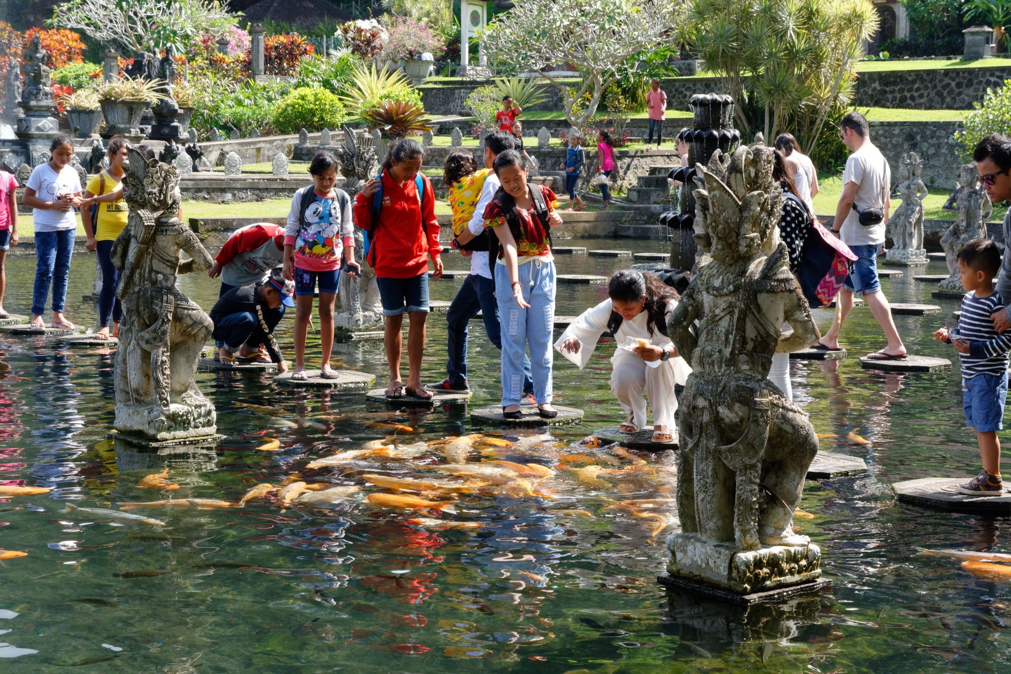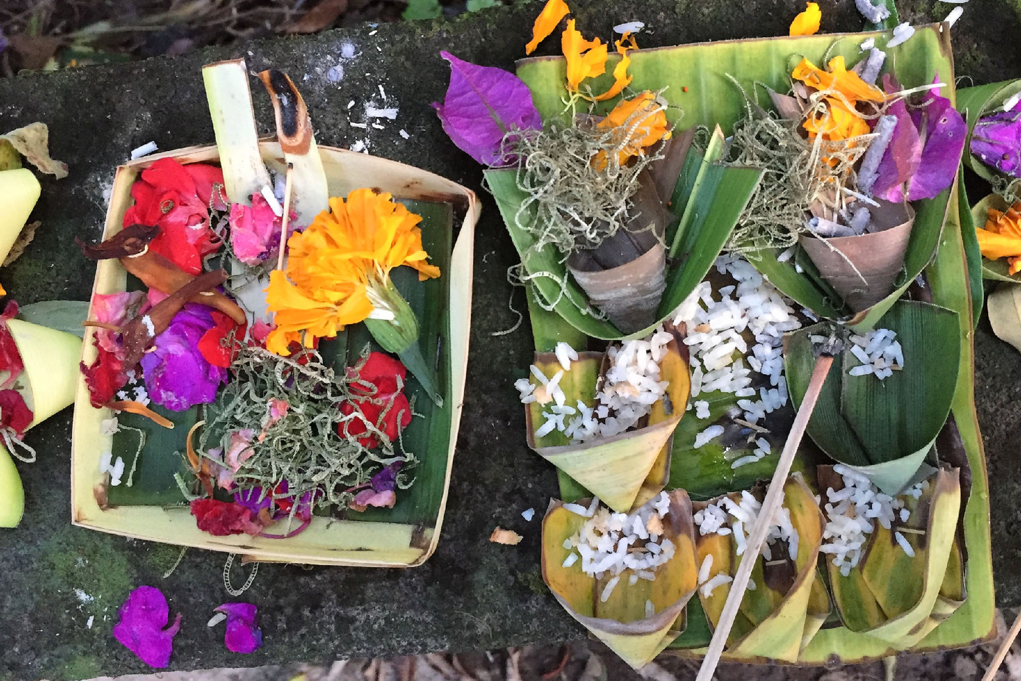 Feucht und heiss hat uns Bali empfangen, auch Ubud entpuppte sich nicht als das kühle Bergdörfchen am Vulkanfuss, sondern eher als umtriebiges Städtchen, wo sich die Autos stauen, die Touristen um die besten Plätze in den Restaurants kämpfen und die Einheimischen die Opfergaben an alle möglichen Orte platzieren. Im strammen Gegensatz dazu die Hotels und Villen, die von der Strasse abgelegen mit eigenen Gärten und Pools die Ruhe in sich sind oder die verwunschenen Wege, die bald in den Dschungel führen. Über Land dominieren dann Reisfelder, welche die Landschaft in feinen Schritten nachzeichnen, am Strand gibt es frischen Fisch und sportliche Surfer zu bewundern.