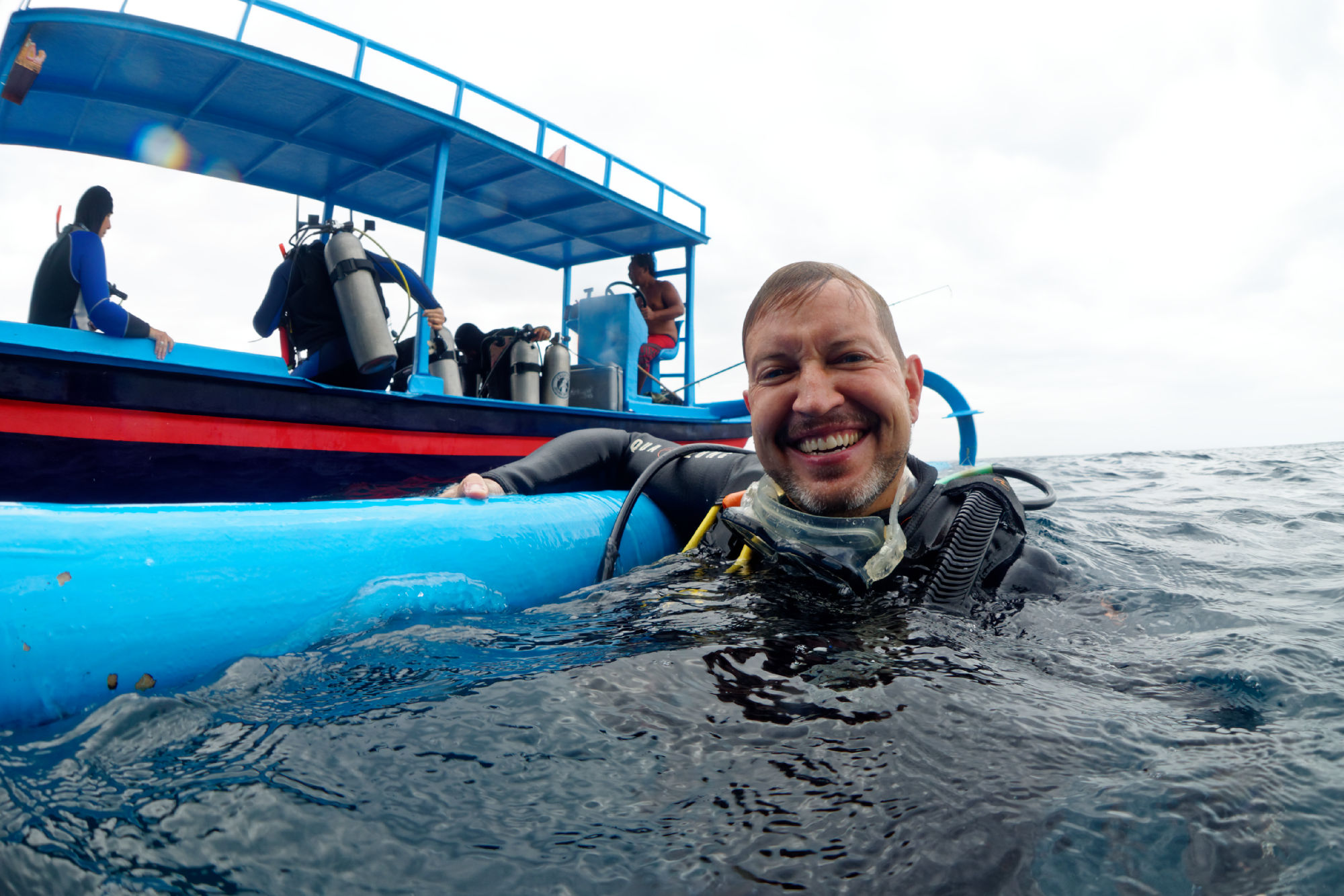 Zum Einstieg auf die kommenden Wochen, während denen das Tauchen eine grössere Rolle spielen wird, haben wir uns schon mal an diversen Tauchplätzen auf Bali eingetaucht (Nochmals ein Dank an Marc, welcher uns das Tauchmaterial mit nach Bali brachte!). Nebst Tulanbem mit der berühmten Liberty Wreck, Candidasa mit ersten Haien und Seepferdchen sind wir auch vor den kleinen, entspannten Inseln Nusa Lebomgan, Nusa Penida und Nusa Ceningan durch wunderbare Korallen mit vielen Schildkröten getaucht. Beim abschliessenden Tauchgang am „Blue Corner“ lernten wir mit starker Strömung zu tauchen. Da war dann mal die Sauerstoffflasche (hauptsächlich von mir) sehr schnell leergeatmet!