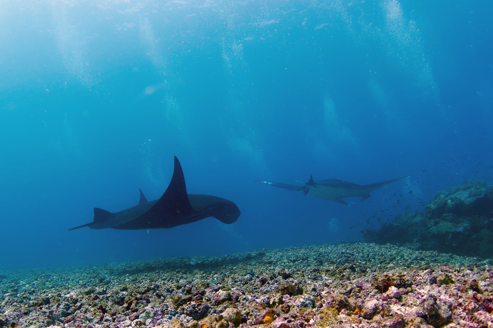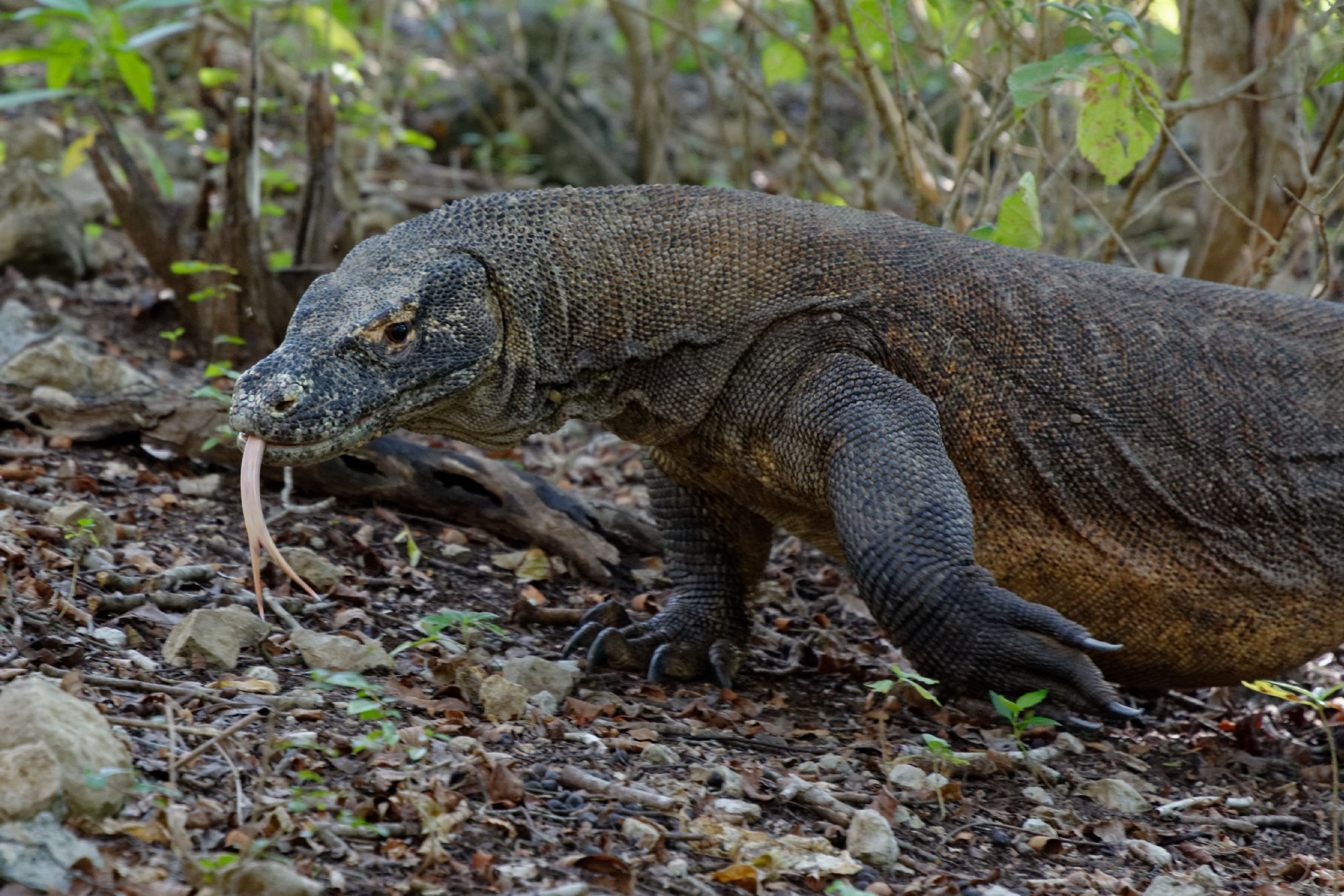 Auf den beiden grössten Inseln Komodo und Rinca leben diese urtümlichen Echsen, die an die längst ausgestorbenen Dinosaurier erinnern. Scheinbar träge liegen die Komodowarane im Gras und bewegen sich sehr gemächlich, können aber bis zu 20km/h schnell rennen und ihre Beute bis auf 7km riechen. Die Beute sind Insekten aber durchaus auch Wildschweine und Hirsche, welche durch einen gezielten Biss in die Achillessehne erlegt und verspeist werden. Wir waren froh hatten wir bei der Erkundung der Insel einen lokalen Guide dabei und sind entspannt wieder aufs Boot gestiegen. Da fühlen wir uns doch bei Begegnungen unter Wasser mit Haien und Mantas sicherer.