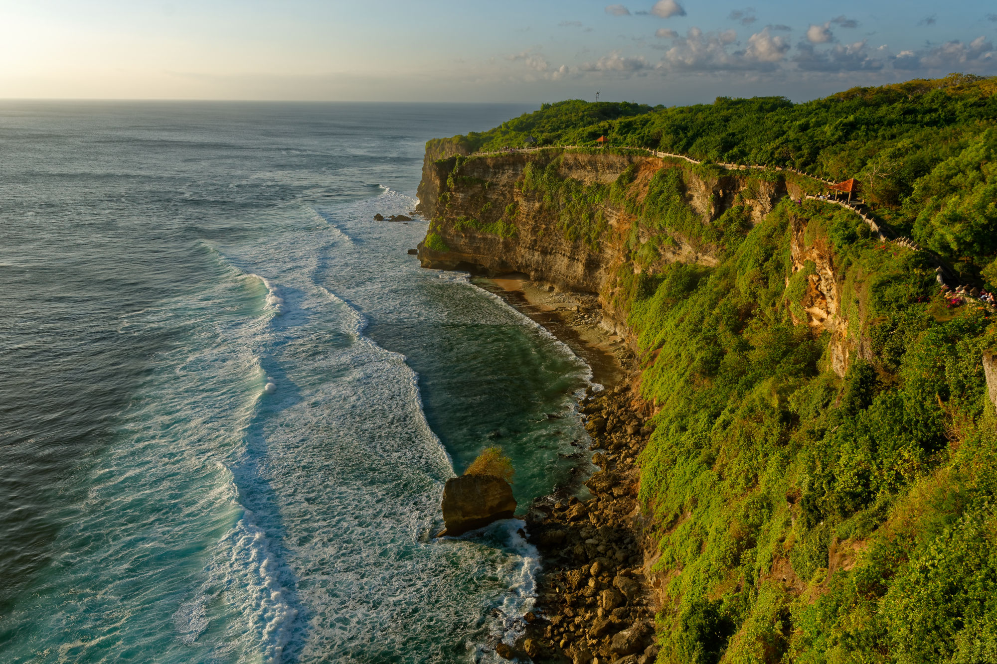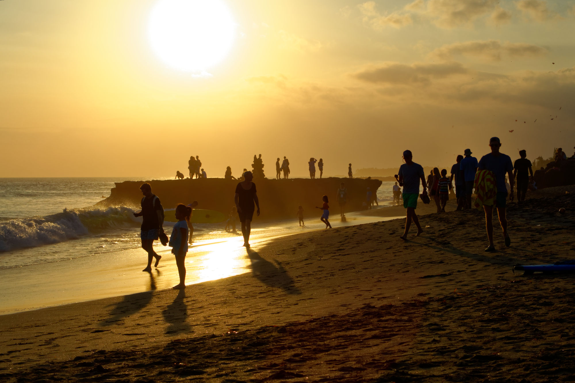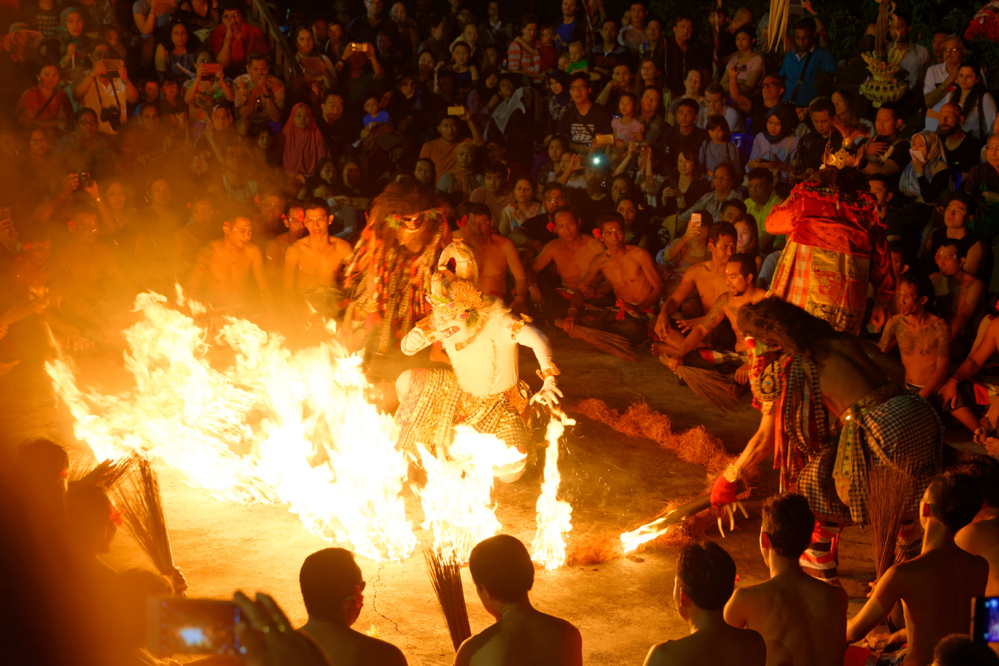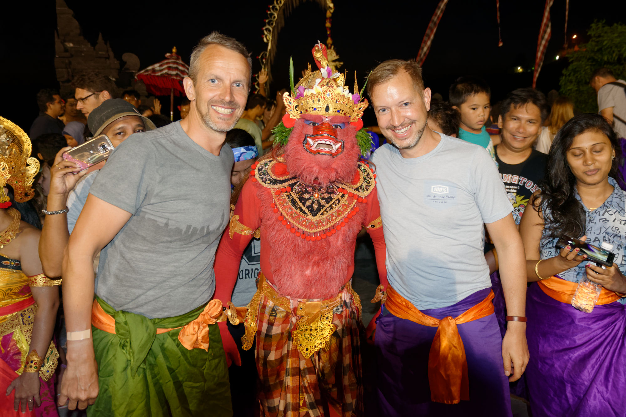 Auf der südlichen Halbinsel steht mit dem Pura Luhur Ulu Watu einer von mehreren Tempel zu Ehren der Meeresgeister, auf deren Unterstützung wir weiterhin zählen. Über den steil abfallenden Klippen wird bei Sonnenuntergang der traditionelle Kecak-Tanz (Affentanz) aufgeführt, der die hinduistische Legende von Rama und Sita erzählt. Den akustischen Rahmen bildet eine Gruppe von ca. 70 Tänzer, welche mit ihrem rhythmischen „kecak-kecak, cak-cak-cak“ Gesang sich und die Zuschauer in eine beinahe hypnotische Stimmung versetzen. Nach gewonnener Schlacht stehen die Schauspieler sogar für „Selfies“ bereit!