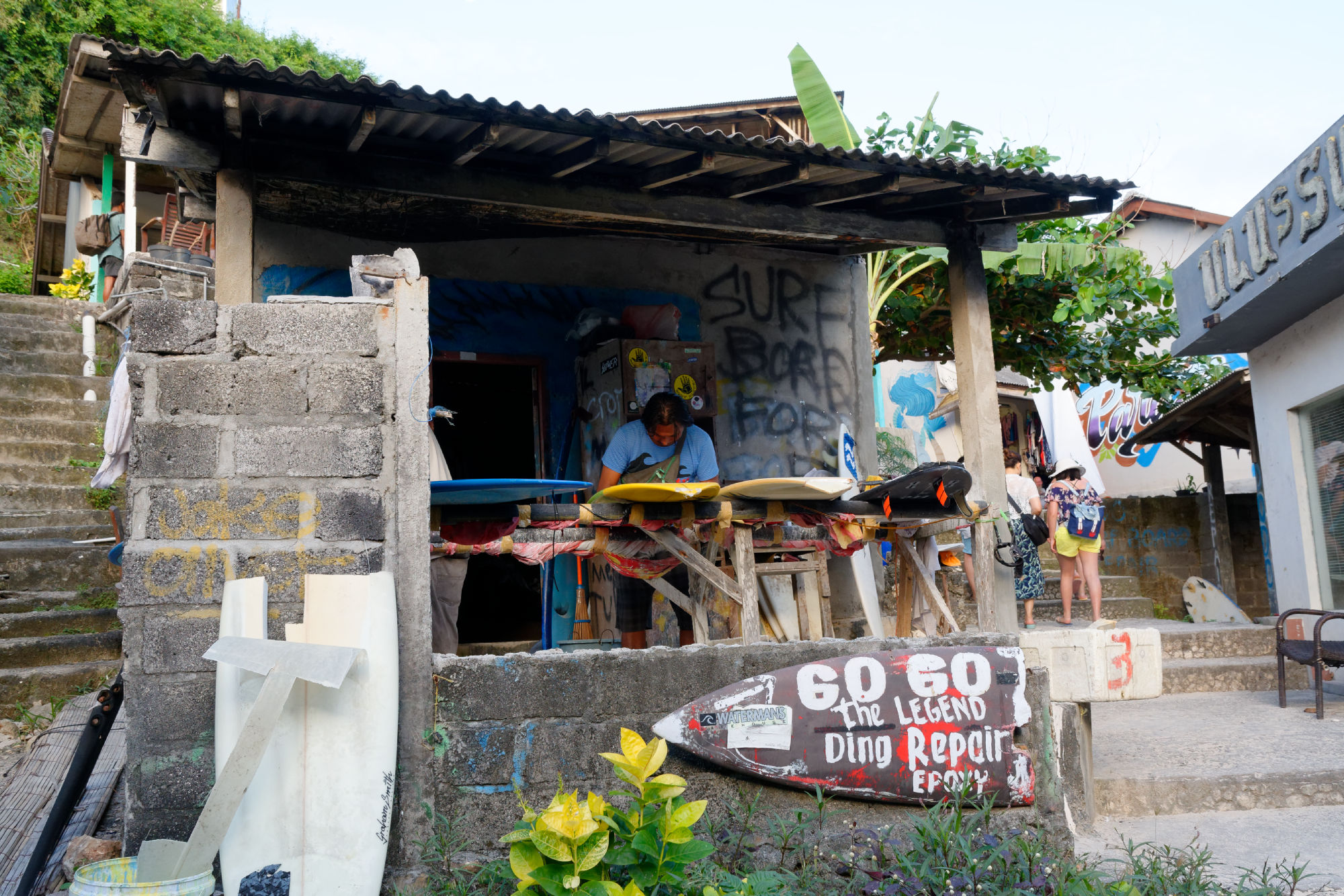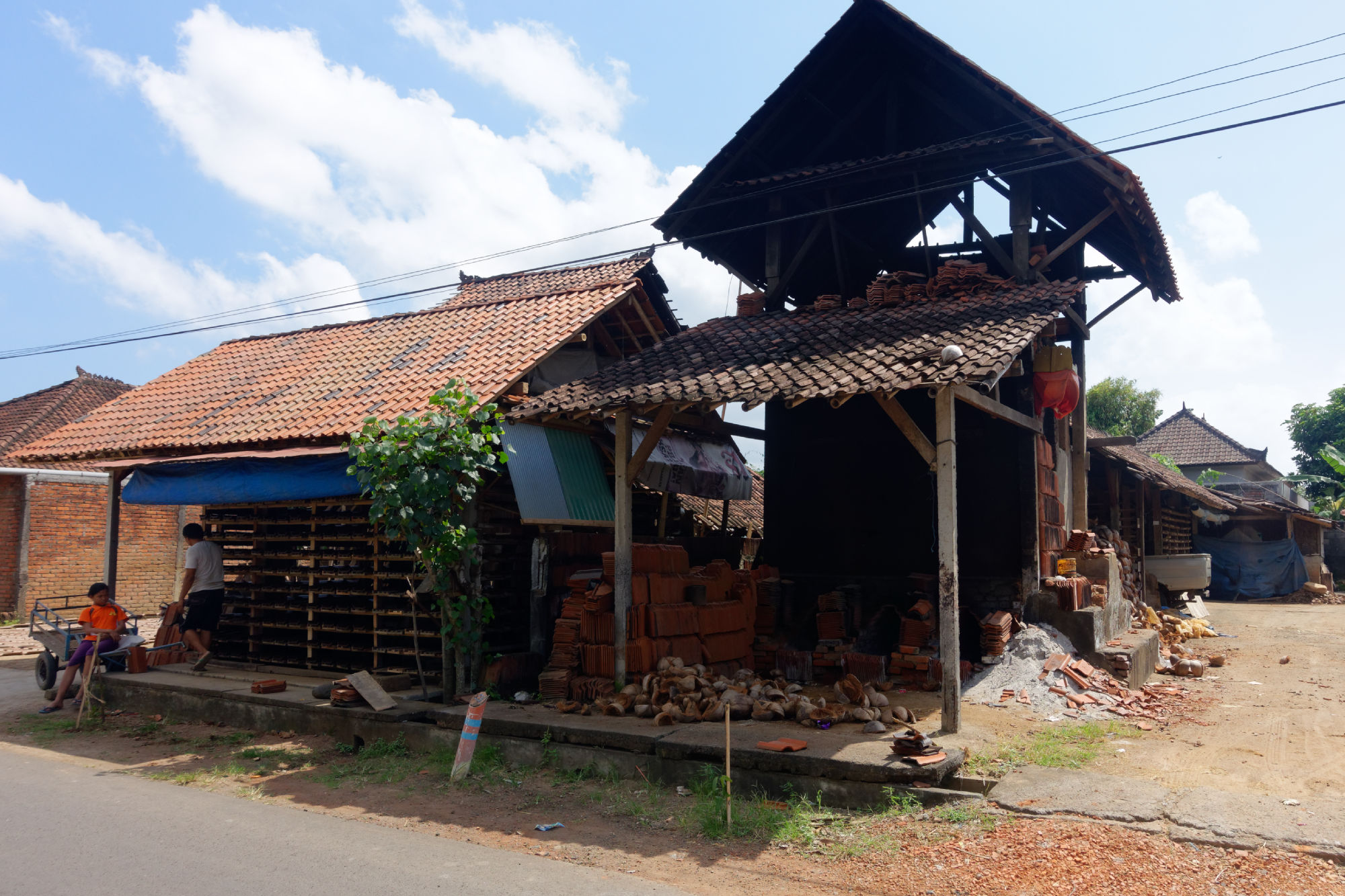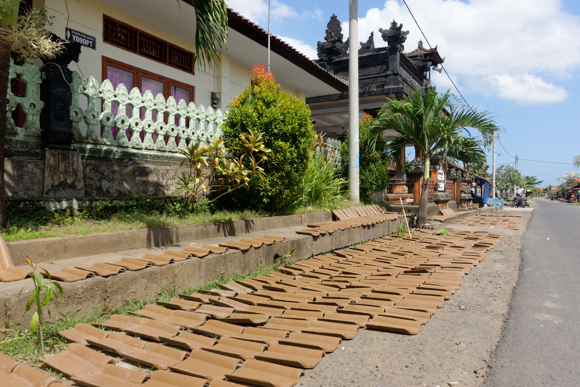 Nebst den täglichen und fortwährenden Zeremonien und Opfergaben vor dem Hauseingang, auf der Strassenkreuzung oder im Tempel, welche die Götter auf Bali offenbar fordern, wird auch sehr viel handwerklich gearbeitet und produziert. Meist mit sehr viel Handarbeit und viel traditionellem Wissen. Entlang den Strassen gruppieren sich thematisch die einzelnen Bereiche und vom Ursprungsmaterial bis zum Endprodukt können die Zwischenschritte beobachtet werden. In Innern der Insel hat sich ein Dorf ganz auf die Produktion von Dachziegeln spezialisiert, die Wäscherei ist in einer offenen Garage untergebracht und die Surfbretter werden direkt am Stand repariert.