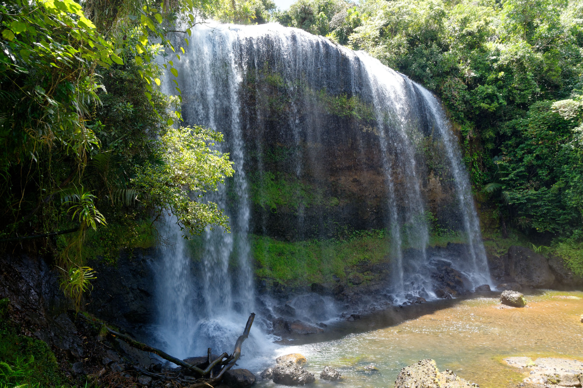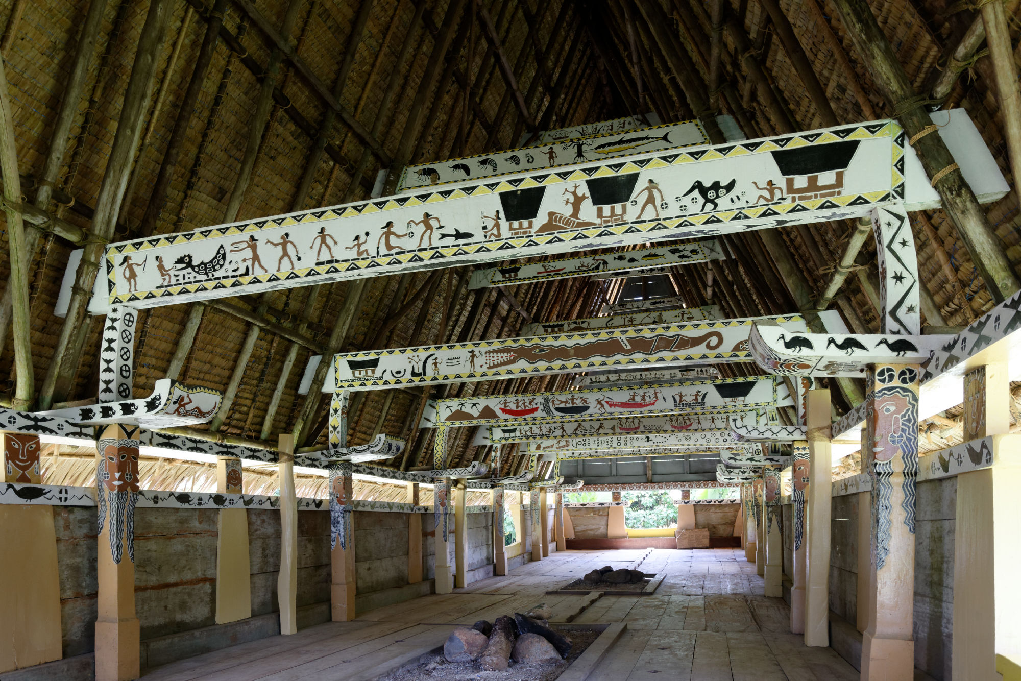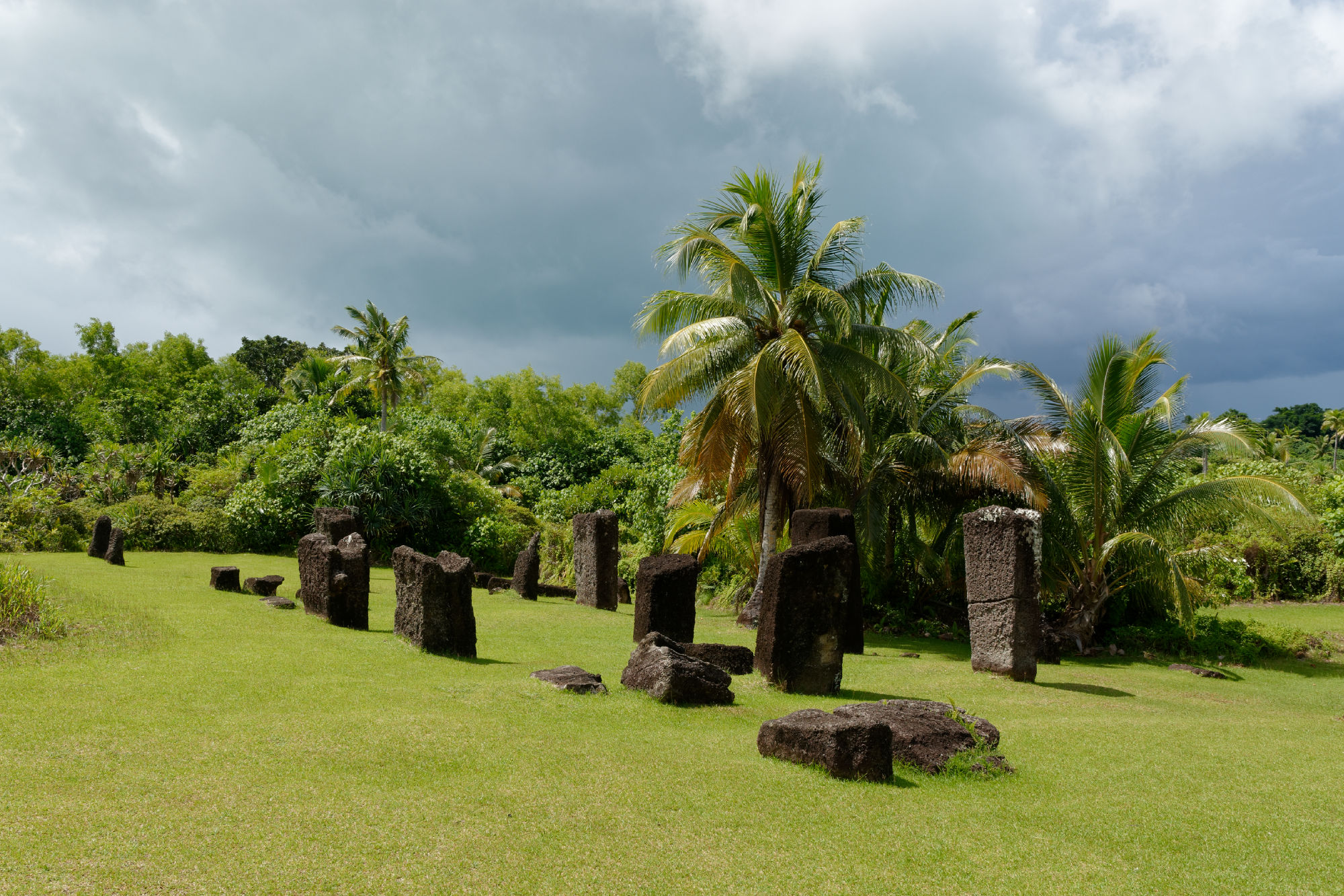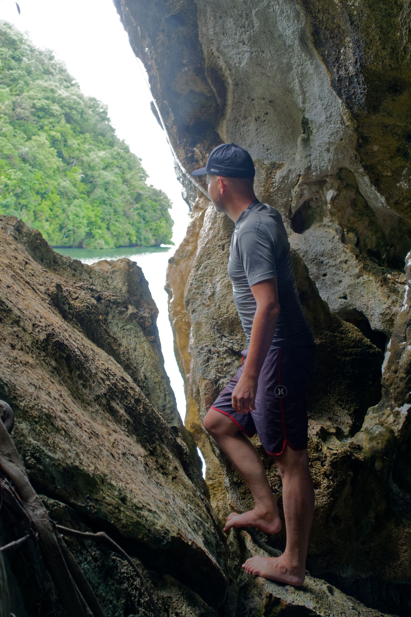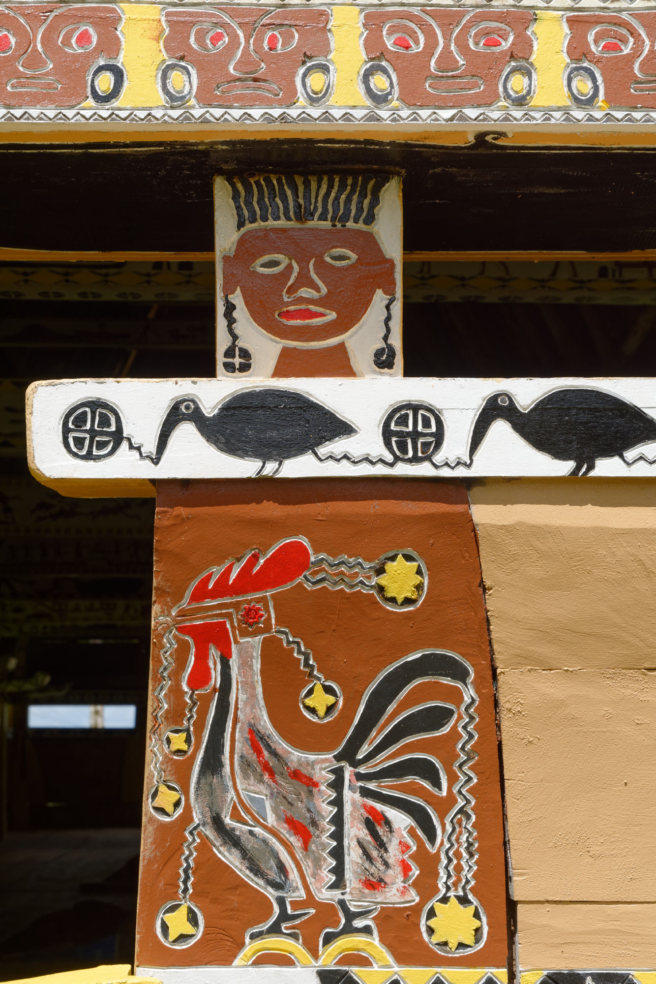Nach der Woche auf dem Tauchschiff und noch mit leichten Schwanken unternahmen wir mit dem Tauchguide Ripon, der nun als Fremdenführer und Chauffeur waltete, einen Tagesausflug auf die Nordinsel Babeldaob. Die Insel misst ca. 44km in der Länge und 14km in der Breite und besteht aus nicht weniger als 10 Staaten („Kantone“) mit einer Bevölkerung von total ca. 10’000 Einwohnern. Vielleicht könnte da der Kanton Glarus mal ein Hilfsprojekt lancieren…. Jeder Staat hat weiterhin ein Gemeindehaus „Bai-Haus“, wo die Männer der Clans die wichtigen Entscheidungen treffen. Die Verzierungen auf den Holzbalken erzählen von den Schwerpunkten des Palauischen Lebens, wo einerseits der Hahn wie auch die Meerestiere eine zentrale Rolle spielen. Einzigartig ist auch das Verkehrssystem von Palau: Die Fahrzeuge verkehren auf der rechten Strassenseite, sind aber rechtsgesteuert. Erklärt wurde uns dies damit, dass die Fahrzeuge am billigsten aus dem „linksgesteuerten“ Japan importiert werden. Abkühlung fanden wir bei einer Wanderung im tropischen Regenwald und einem kühlen Wasserfall, bevor wir die Steinmonolithen (80-150 n.Chr.) besuchten, die teilweise Gesichter zeigen und entfernt an Steingesichter der Osterinseln erinnern.