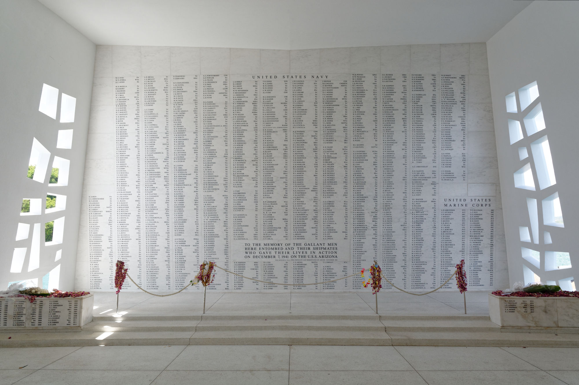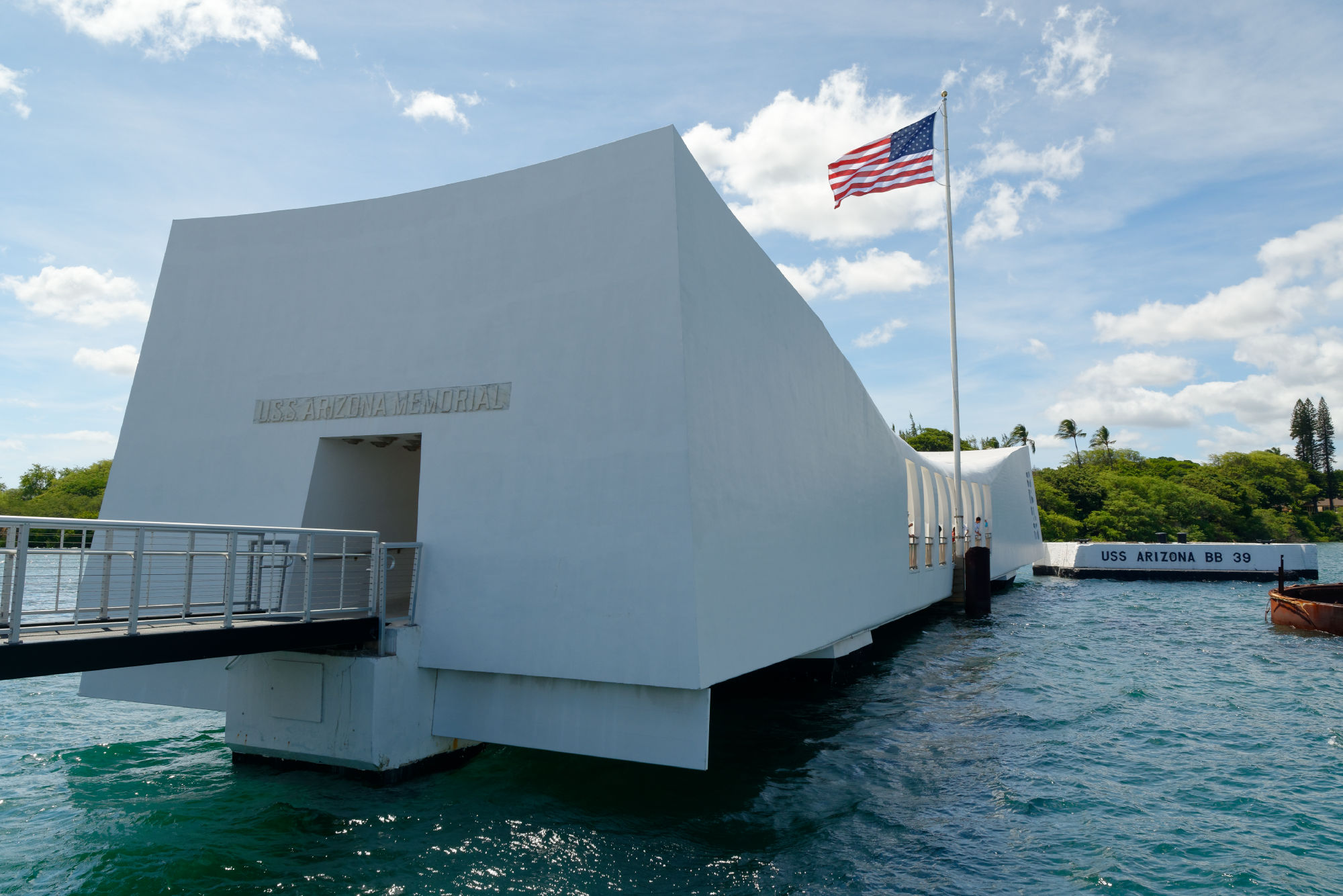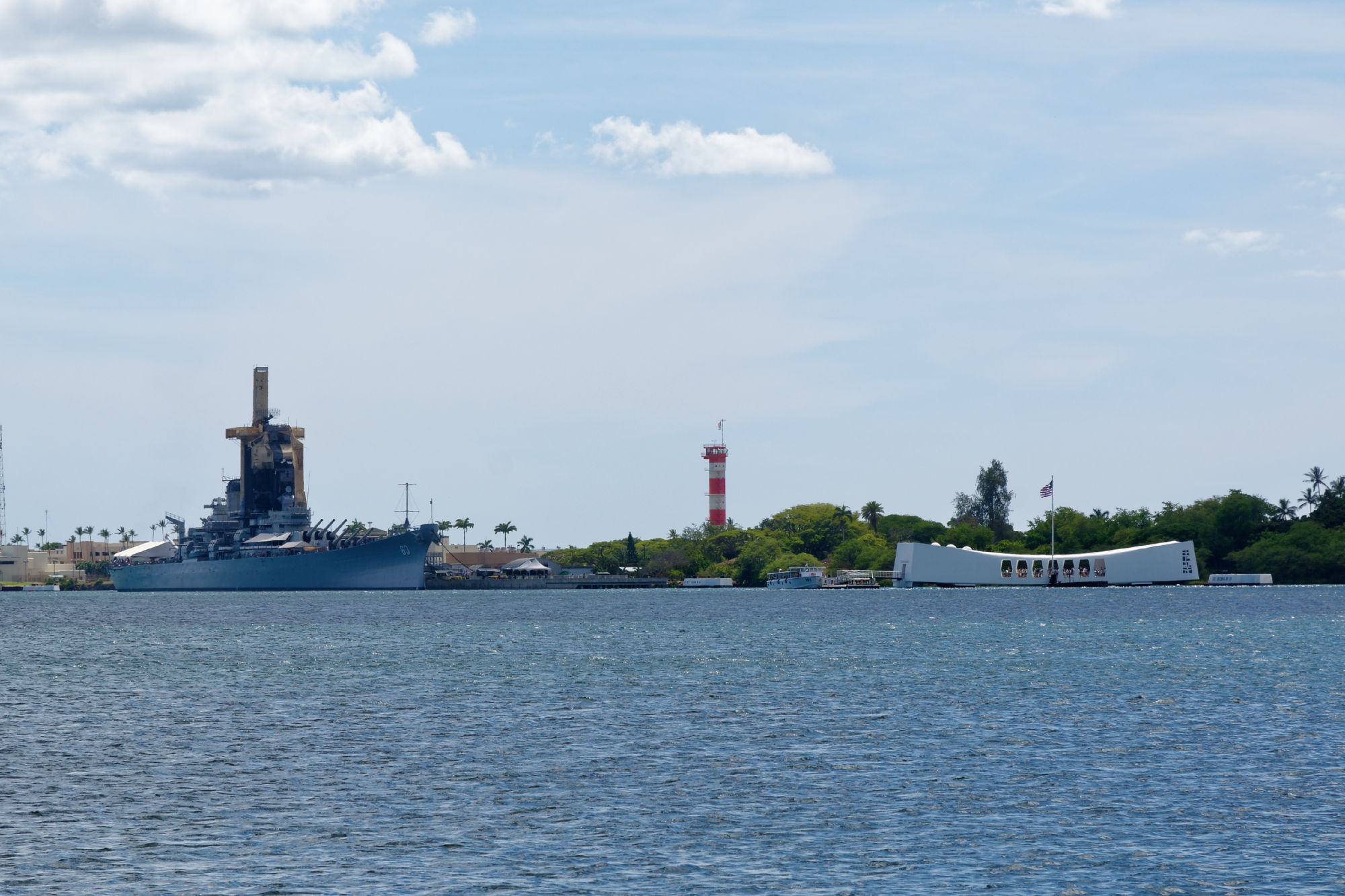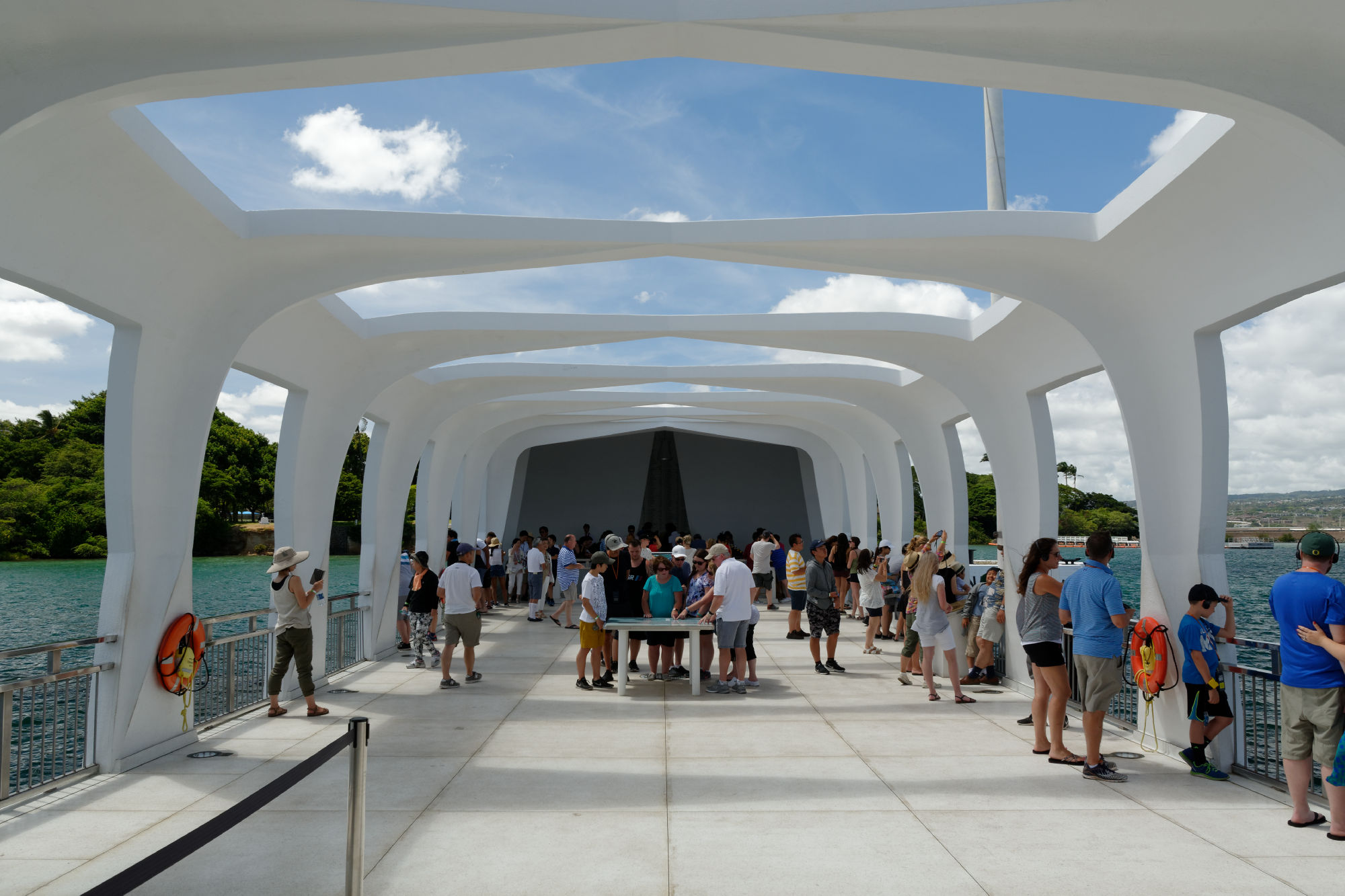 Die Kreise unserer Reise schliessen sich langsam. Einer dieser Kreise sind die Mahnmale des zweiten Weltkriegs, der sich rund um den Pazifik schwergewichtig in den Kämpfen zwischen Japan und den USA abspielte. Nachdem wir beim Start in Japan an die Folgen des ersten Atombombenabwurfs über Hiroshima an das Kriegsende erinnert wurden, auf der südlichen Insel des Inselstaates Palau den Kriegsschauplatz Peleliu besuchten, war im Hafen von Pearl Harbor der Überraschungsangriff der Japaner auf die amerikanische Flotte zu Beginn des 2. Weltkriegs und deren Folgen das zentrale Thema. Mit viel Pathos wird den Opfern des Angriffs mit einer mächtigen Inszenierung gedenkt: Überlebende kommen zu Wort und die damals gesunkene MSS Arizona, die immer noch im Hafen liegt, kann über eine Besucherbrücke inspiziert werden. Auf einer Gedenktafel sind alle damals verstorbenen Armeeangehörigen verewigt.